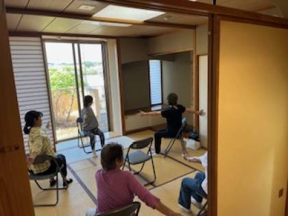 講座にあたってイスヨガを体験していただきます 高齢者の身体特性やフレイル、イスヨガの基本をお伝えしながら実践していきます