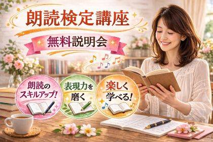 【講座説明会のご案内】 朗読検定対策講座にご興味をお持ちいただき、ありがとうございます。本説明会では、朗読検定の概要から、合格に必要なポイント、そして講座の具体的な内容までを分かりやすくお伝えします。